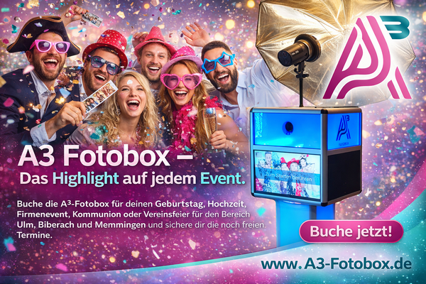 Mach deine Feier zu einem ganz besonderen Erlebnis – mit der A3 Fotobox! Ob Geburtstag, Hochzeit oder Firmenfeier: Unsere Fotobox ist der garantierte Stimmungsmacher und sorgt für jede Menge Spaß. Deine Gäste werden es lieben, gemeinsam vor der Kamera zu posieren und spontane, lustige Erinnerungen festzuhalten.