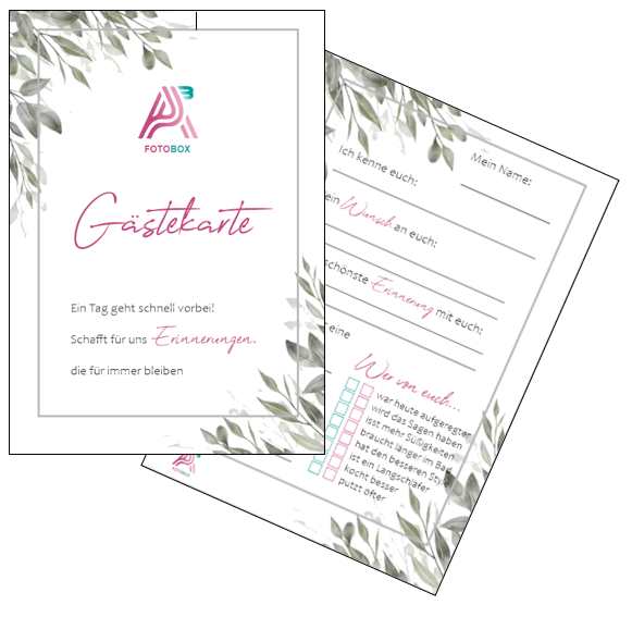 Schon gehört? Ab sofort erhaltet Ihr auf Wunsch unser A³-Fotobox-Kartenspiel, die Gästekarte oder das Hochzeitsquiz mit zu eurer Buchung dazu.